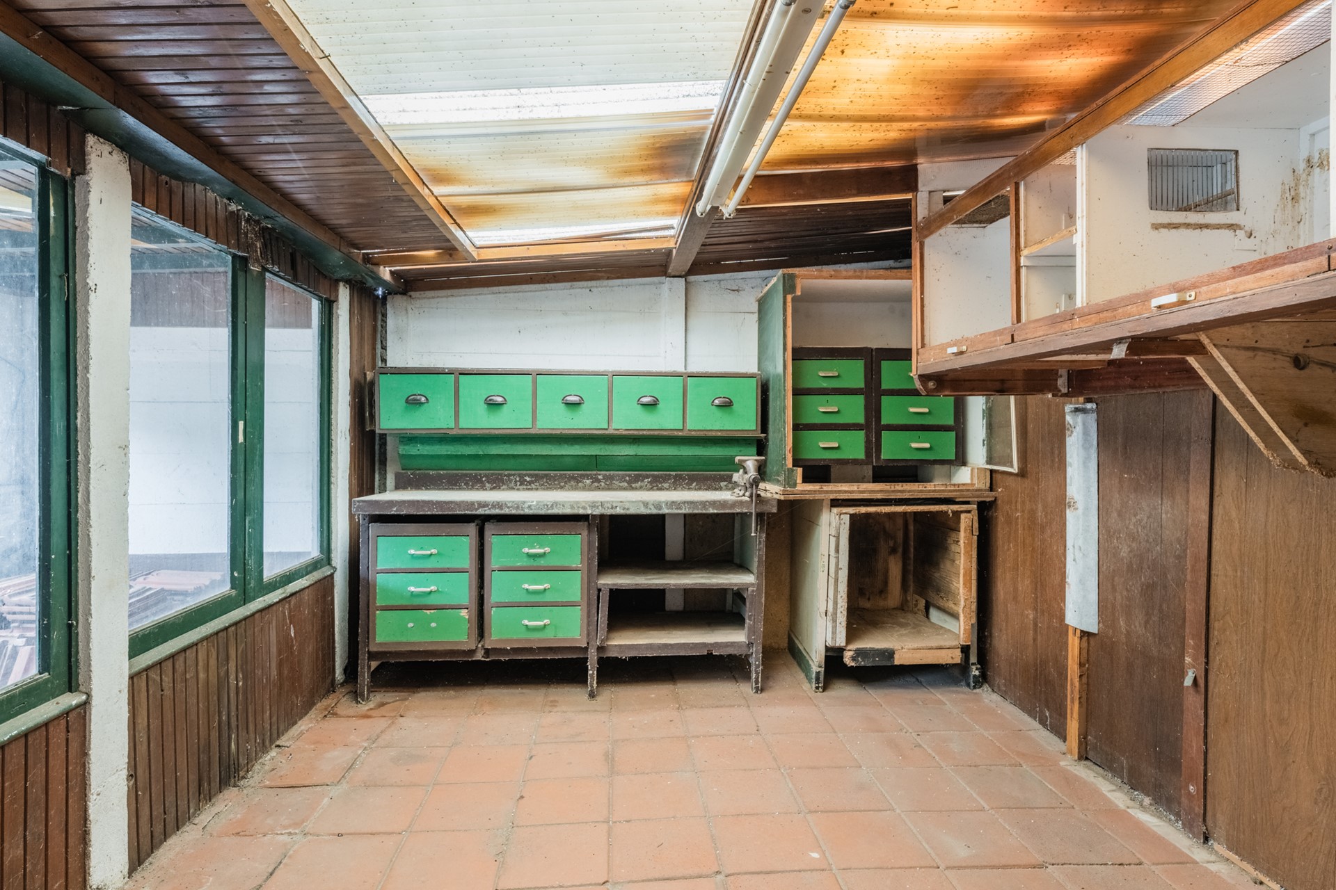 - open woonkeuken aan de achterzijde (aanbouw) met de oudere keukeninrichting