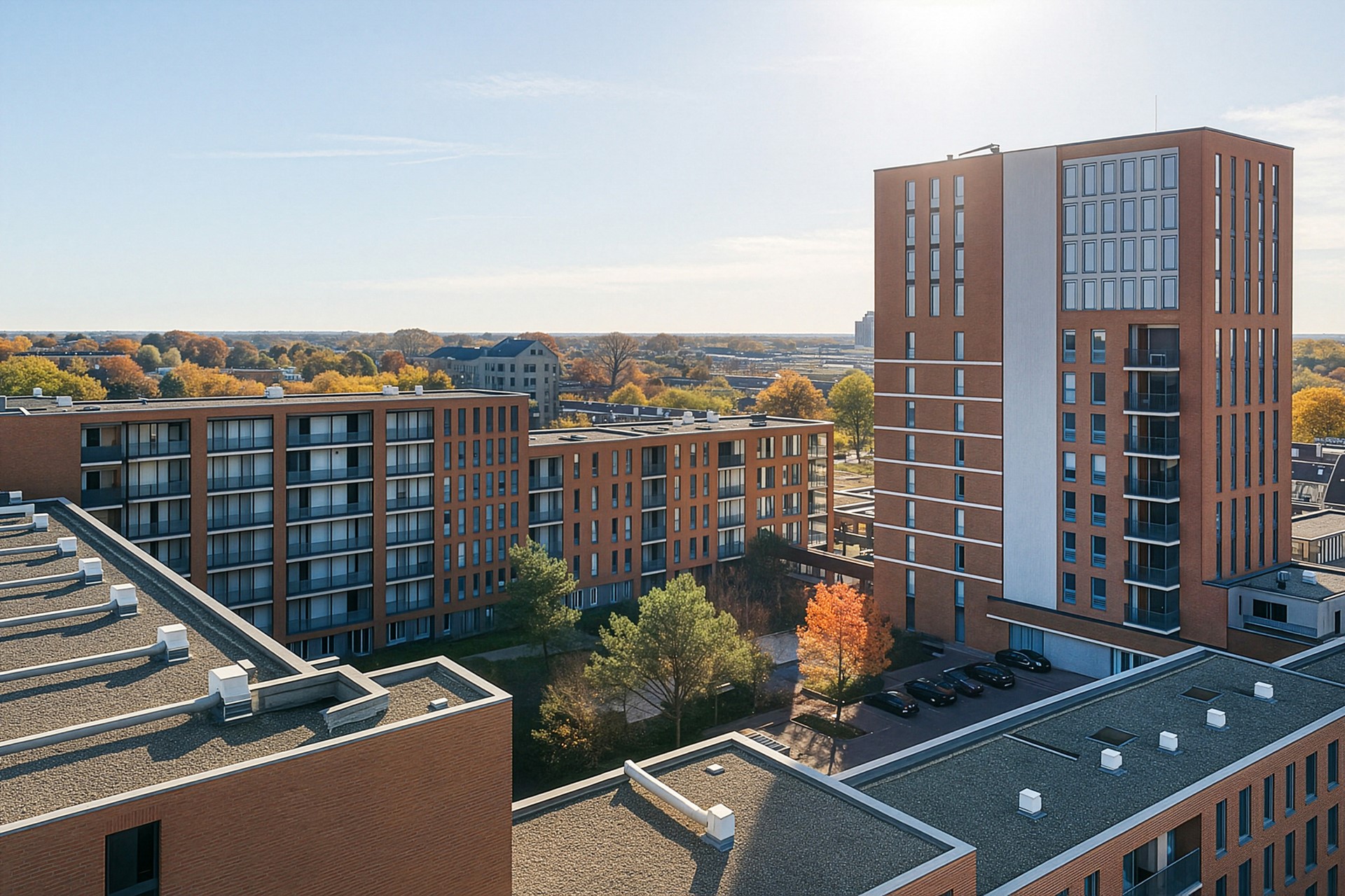 - er is sprake van een beschutte ligging; door ligging op de 4e verdieping zie je enerzijds de omgeving heel goed maar tegelijkertijd is het rustig en geniet je van het water en groenvoorzieningen