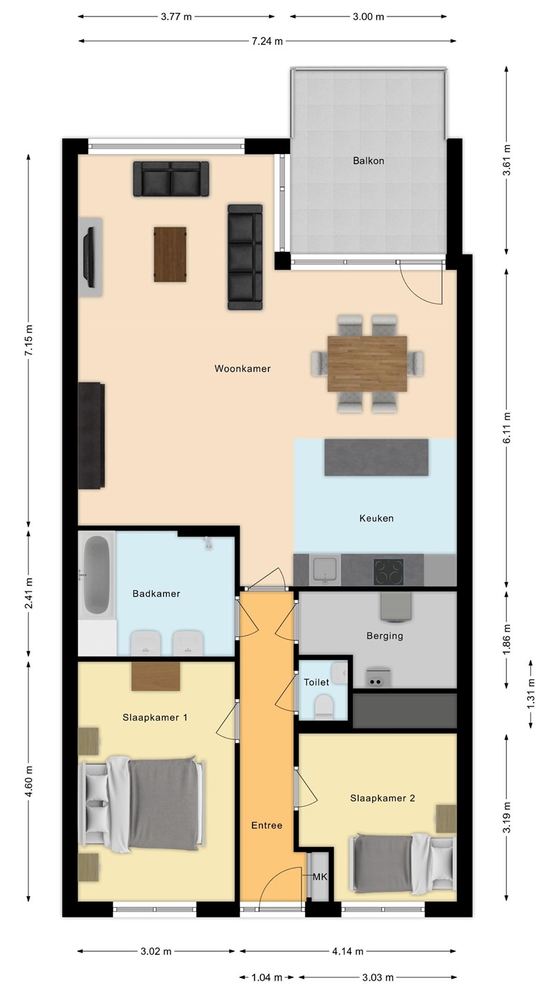 Aantal kamers 3 (waarvan 2 slaapkamers)