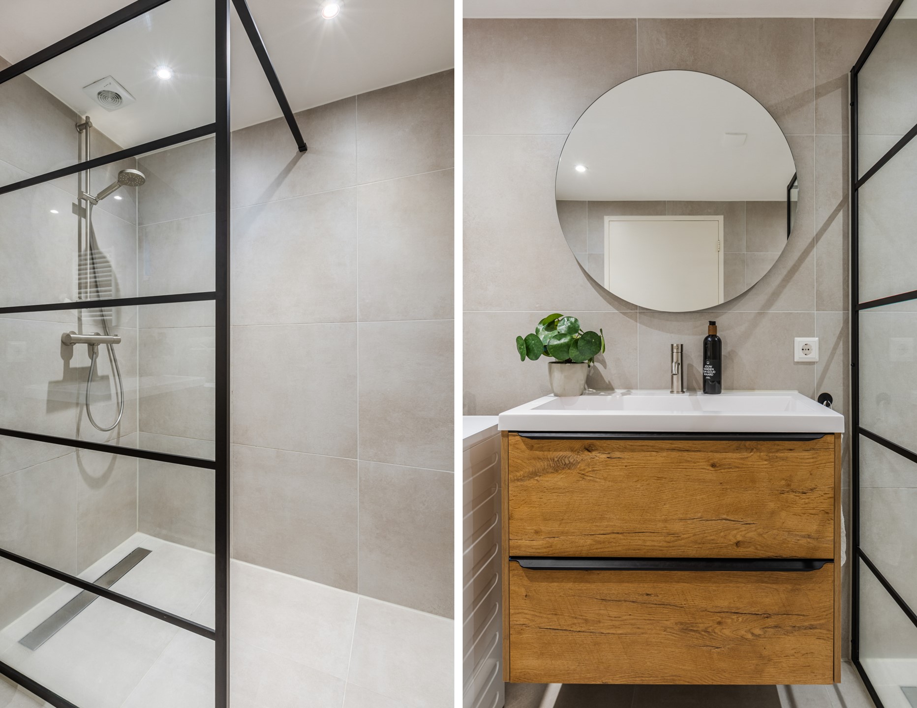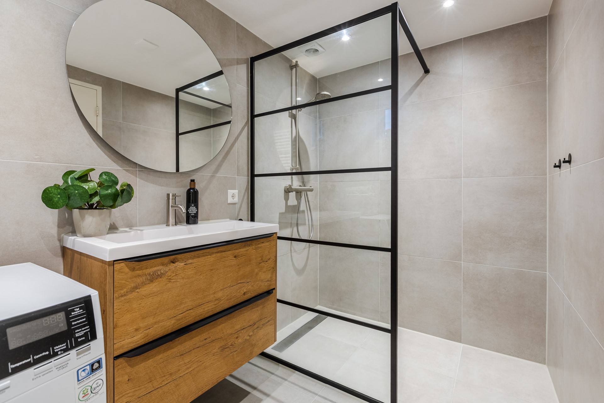 Het toilet is in 2023 volledig vernieuwd. De ruimte is betegeld en netjes afgewerkt, met een closet en een fonteintje. Ook de badkamer is in 2023 volledig vernieuwd. Ondanks het compacte formaat is de ruimte slim ingedeeld en voorzien van een ruime inloopdouche, een luxe wastafel en aansluitingen voor de wasmachine.