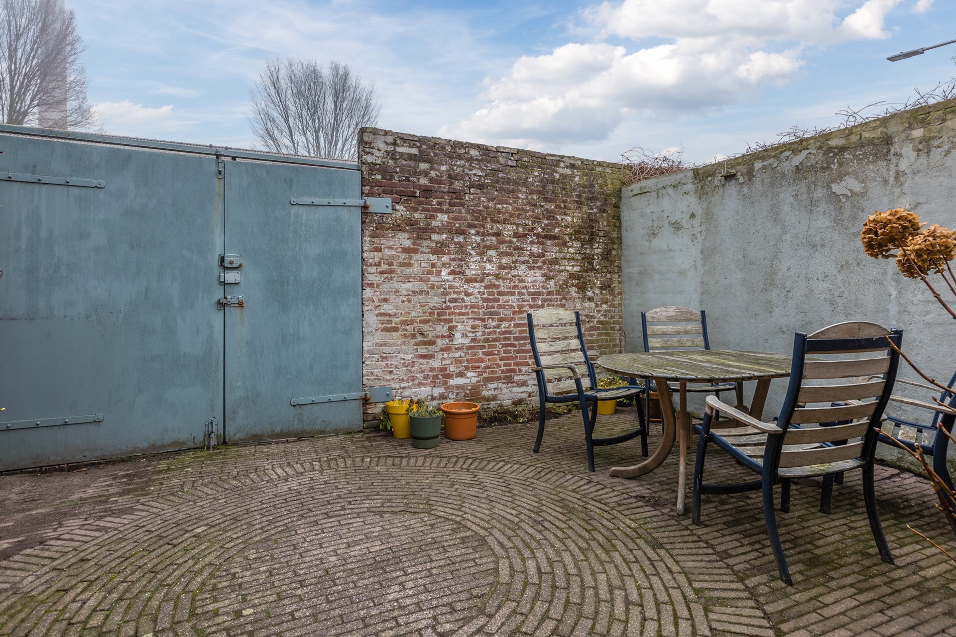 De achtertuin is verzorgd aangelegd en biedt zowel zonnige als beschutte plekken. De gemetselde tuinmuur en klinkerverharding geven de tuin een stoer en historisch karakter. Achterin bevindt zich een ruim terras waar je in alle privacy kunt zitten, zonder inkijk van achterburen. Via de achterom bereik je direct het rustige straatje met parkeergelegenheid. Daarnaast is er een praktische stenen berging met elektra aanwezig.