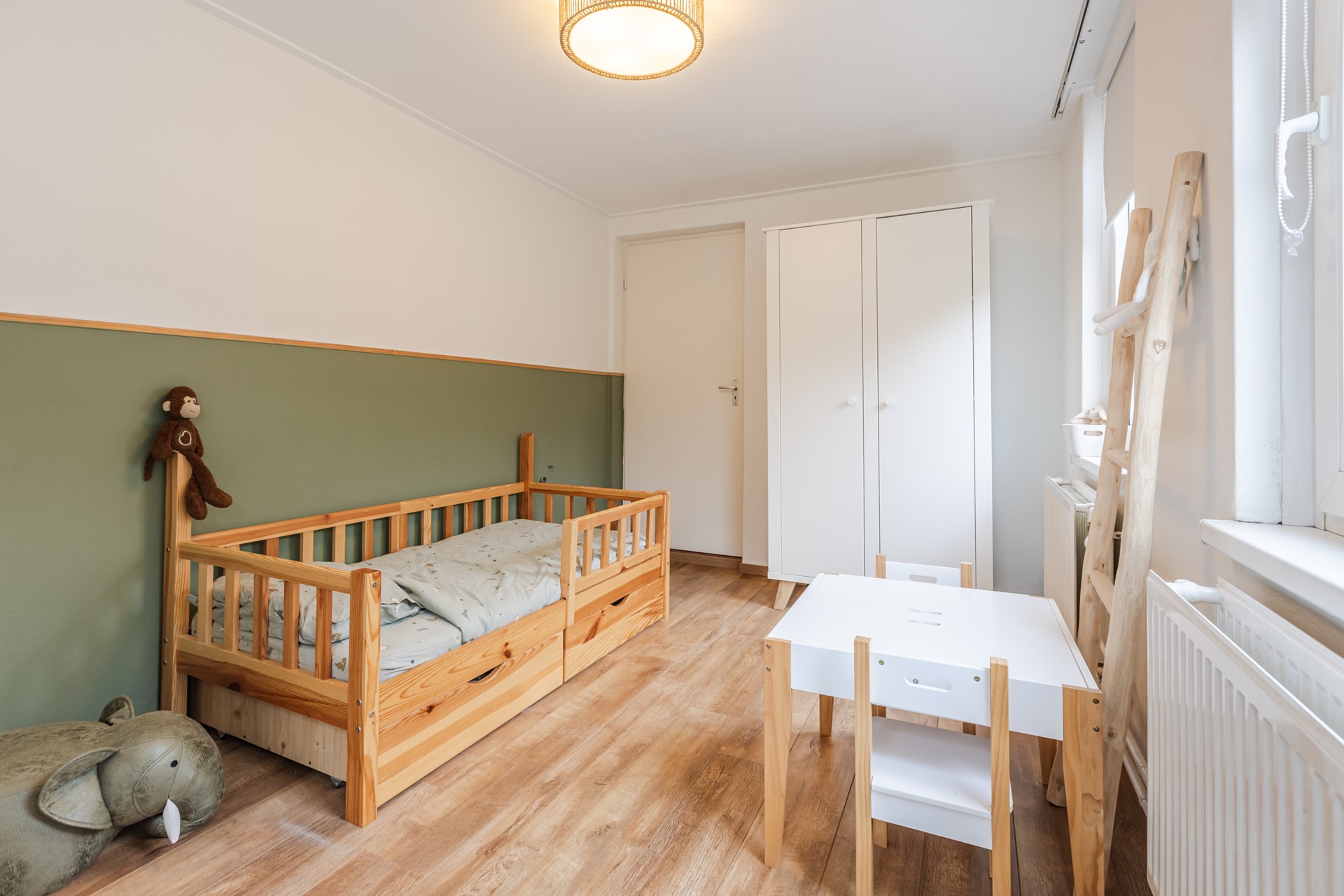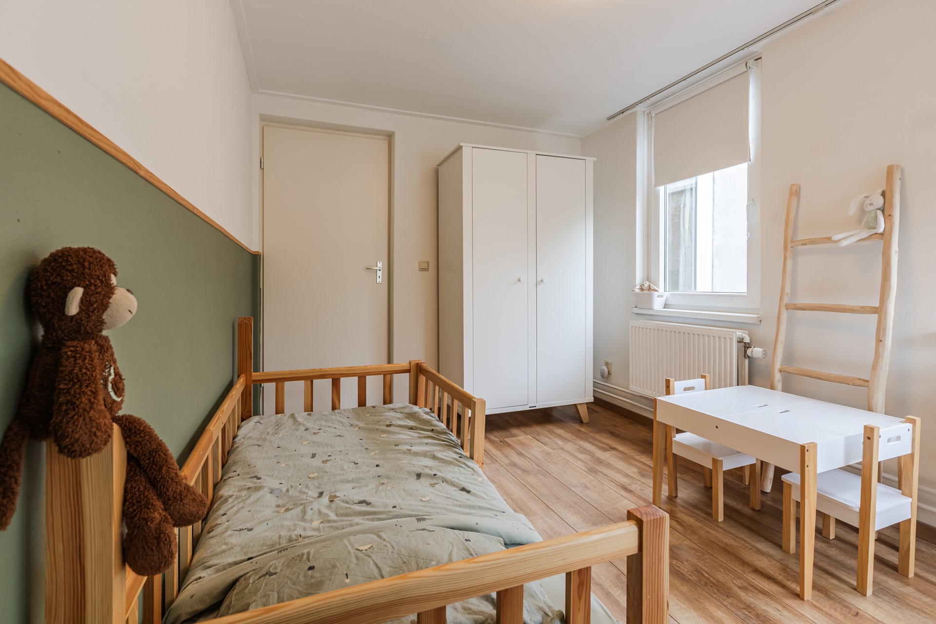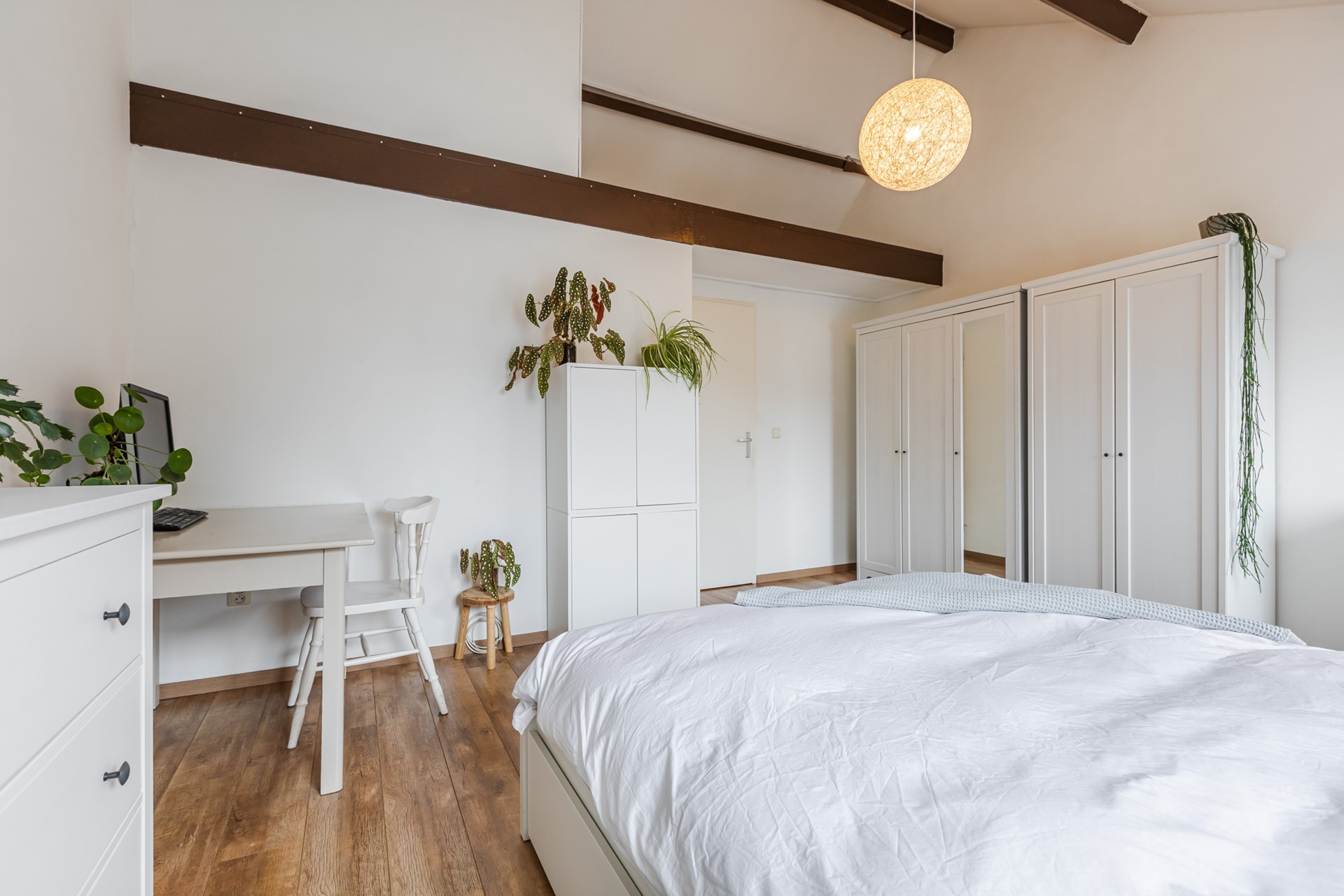 Via de slaapkamer aan de voorzijde is de bergzolder bereikbaar, ideaal voor het opbergen van spullen die je niet dagelijks nodig hebt.